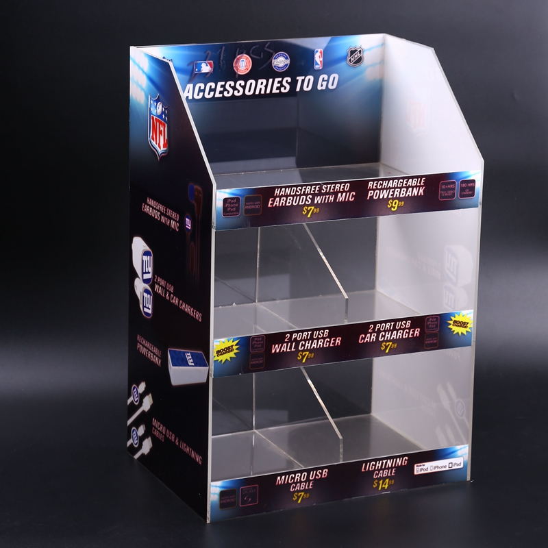 產品描述:亞克力展示架,適用于大中小不同規格的商場及個人店鋪,外表可以印刷圖案或者彩色貼紙,讓客戶能夠直觀的了解到內部的產品信息、屬性和特點,為你量身定制不同大小,不同規格的設計,方便展示您的電子和其它產品,我們也可以為您添加LED彩燈,讓產品在黑暗之中更加顯著耀眼。